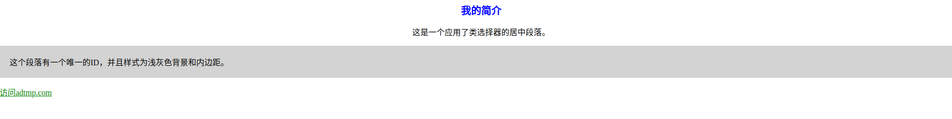 <p id="introduction">这个段落有一个唯一的ID,并且样式为浅灰色背景和内边距。</p>