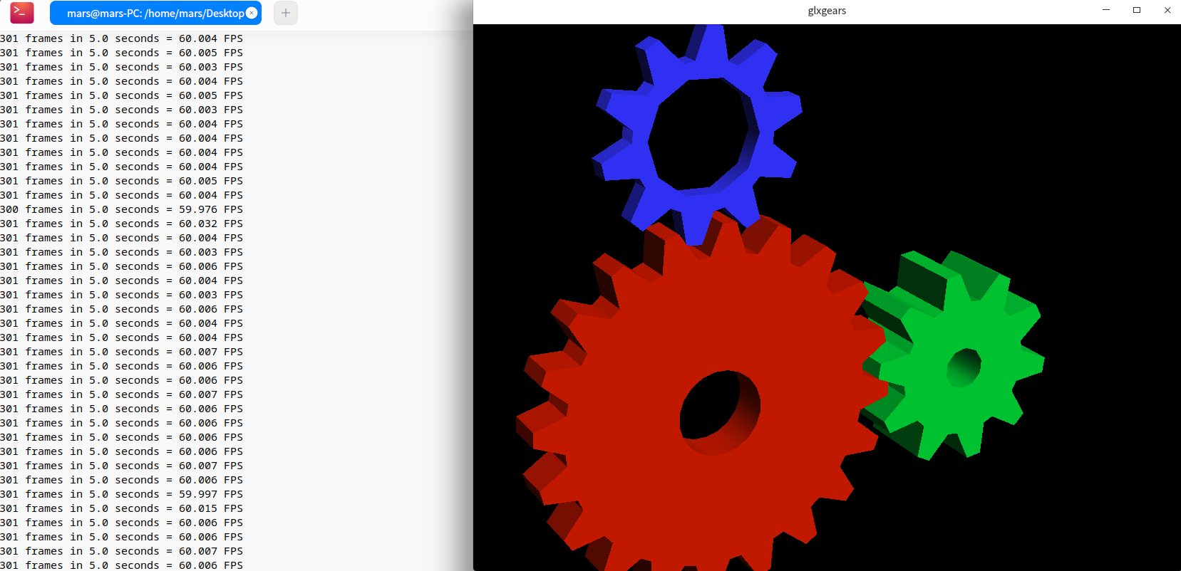 - glxgears运行动画及实时帧率