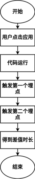 在程序中增加埋点,通过埋点触发的时间差来计算时长。这个方法也就是在应用的代码上增加一个埋点,代码运行到埋点处打一个时间戳,再运行到下一个埋点处又打一个时间戳,这两个时间戳的差值,就是时间差值,整个流程如图(二)所示: