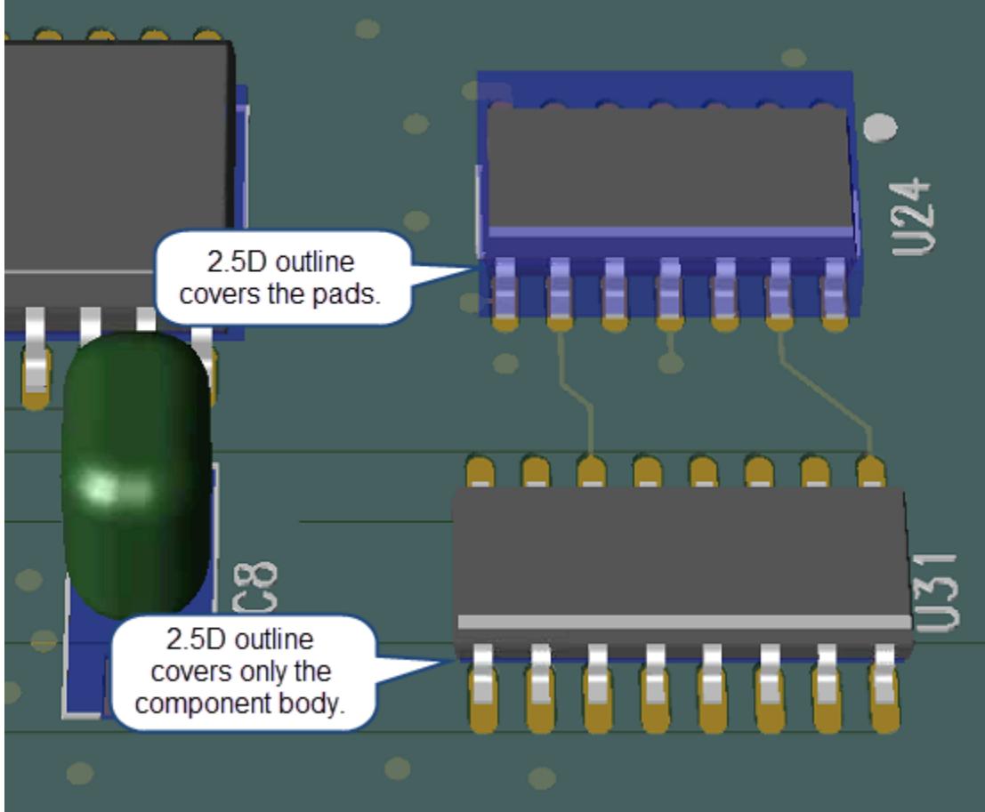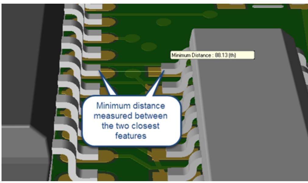 使用"测量距离"和"最小距离测量"功能手动检查元件与 PCB 上某点或组件之间的距离。此选项在对齐 3D 模型与封装焊盘时特别有用。