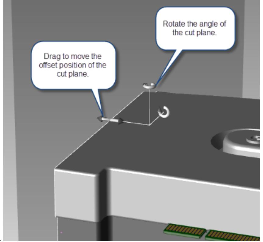 当切面出现时,将切面拖动到您想要的位置并根据需要旋转它以获得所需的剖切视图。3D 切面从视图中移除一侧的所有 3D 材料。