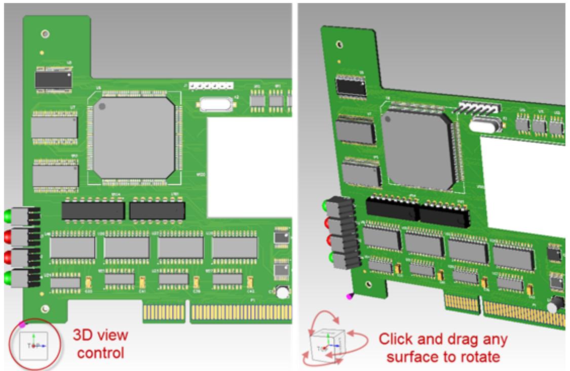 或者,您可以动态旋转 PCB,点击🖱️立方体控件的任何表面并在所需方向旋转。PCB 会随着立方体的旋转而移动。