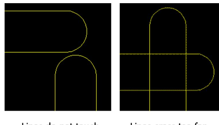 当线端"足够接近"时可用:接触、轻微交叉或完全匹配。如果线型未接触或交叉过多,命令无效。