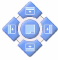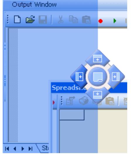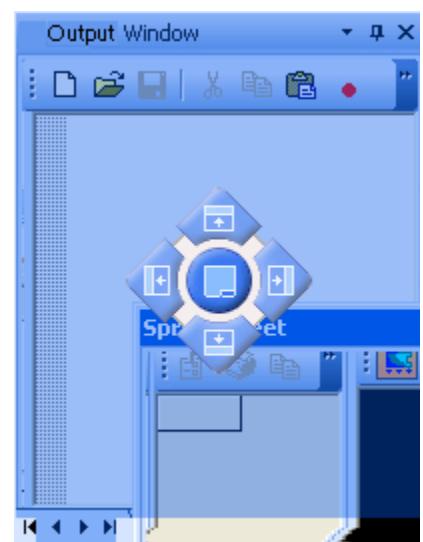 使用标题栏将窗口拖入另一个窗口。开始拖动窗口时用户界面中会出现额外图形。在要拖入的停靠窗口中心会出现包含图形的箭头组如图 4 所示。根据拖入的窗口,箭头组中心可能还有选项卡图形