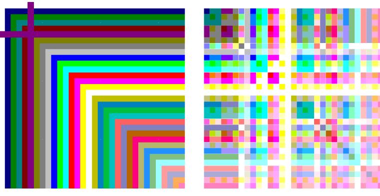 拖动窗口时悬停在一个箭头上。例如悬停在左箭头上。沿所拖动窗口侧会出现透明色块,指示释放鼠标按钮时窗口将停靠的位置。例如悬停在左箭头时输出窗口左侧会出现色块如图 5 所示