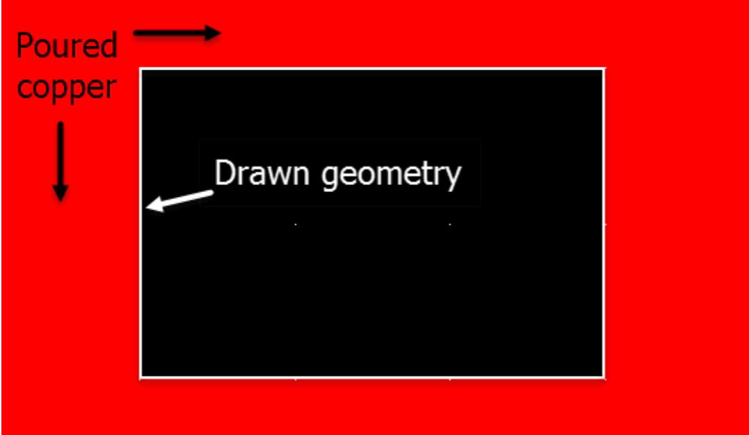 一旦铜被浇注,它会浇注到绘制几何图形的外围 - 挖空区域显示边框的内边缘。