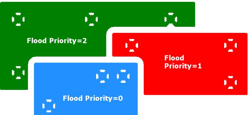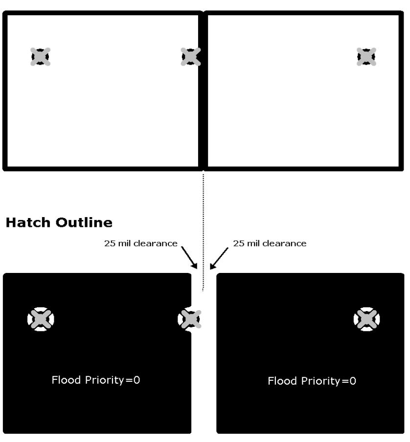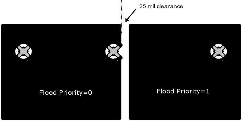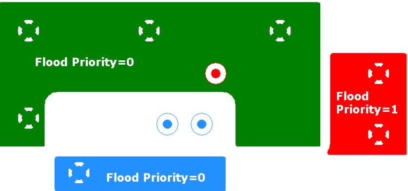 要确定哪个形状应首先填充,您必须为每个形状设置填充优先级。优先级数字较低的形状将比优先级数字较高的对象先填充。不同层上的覆铜平面是独立处理的。