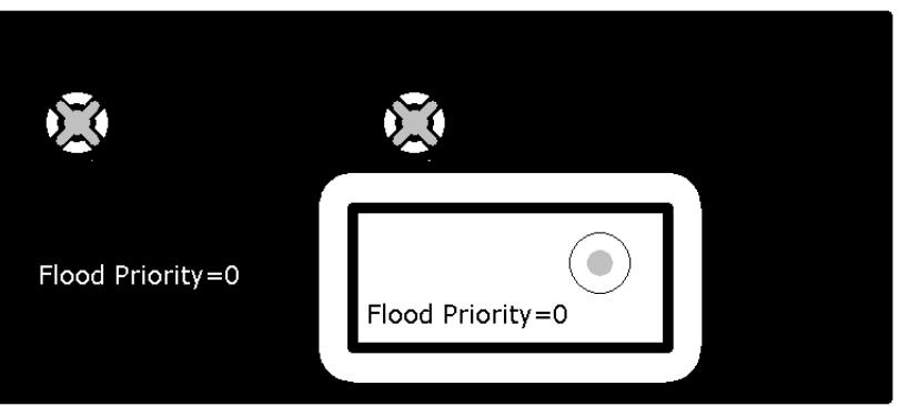 如果同一层上有重叠边框且填充优先级相同,软件无法确定哪个是障碍物,哪个是障碍物周围的间隔。为避免冲突,重叠或公共部分将被绘制为非填充区域。