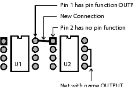 添加连接时,命令行为取决于被连接管脚的状态,如管脚不在网络中、一个管脚在网络中、一个管脚定义为输出或合并网络。