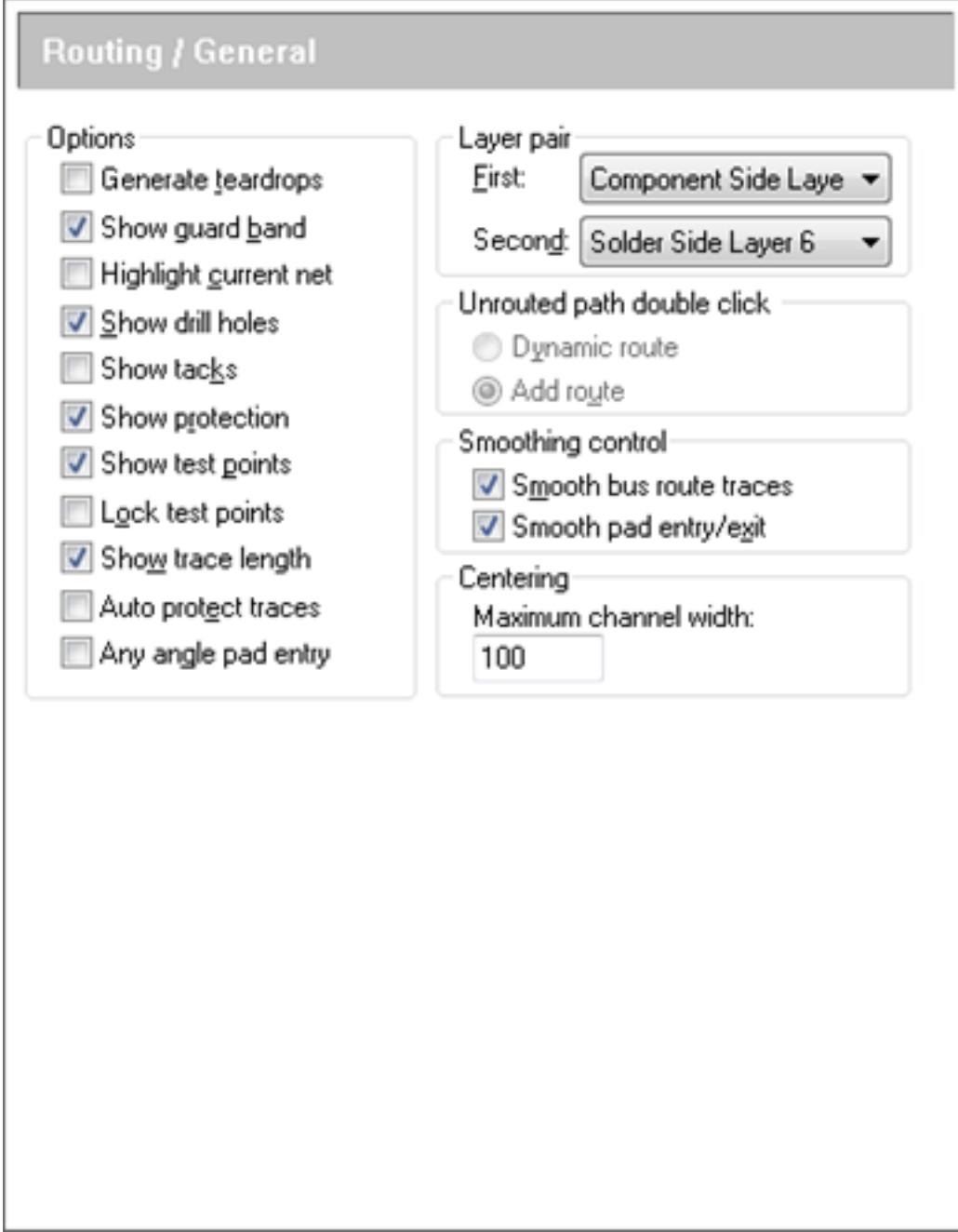 | 未布线路径双击区域 | 指定双击未布线时启动的布线操作。• 动态布线 — 启动动态布线• 添加布线 — 启动手动布线 |