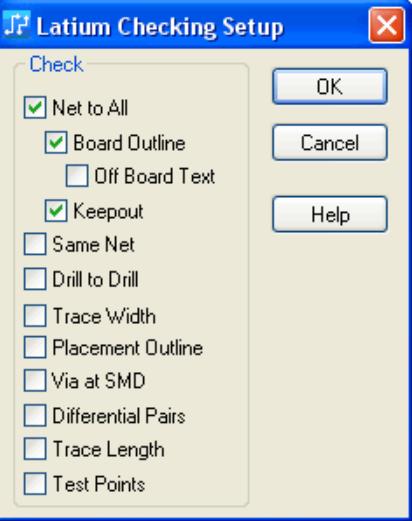 使用 Latium 检查设置对话框设置 SailWind Router的检查规则。