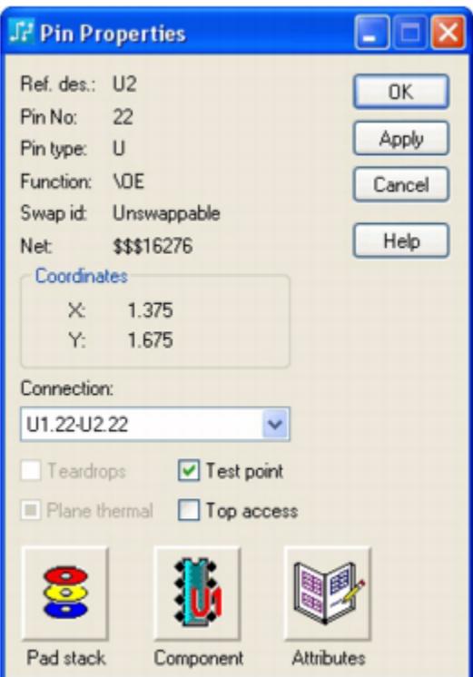 | 仅当过孔或管脚是测试点(测试点启用)时才能设置顶部访问选项。 | |