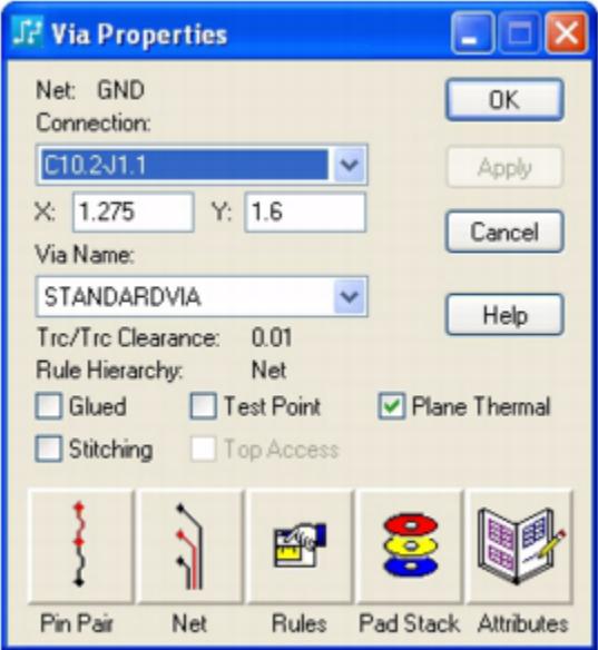 使用"焊点或走线拐角属性"对话框获取和修改所选走线拐角或焊点的信息。