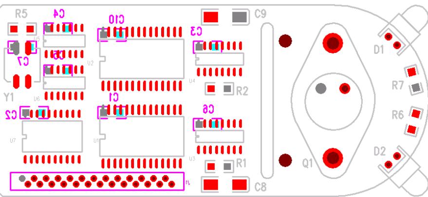 您可以使用组件属性对话框放置元件。使用此方法放置 LED 及其电阻。这些元件放置在板右侧的圆弧周围。
