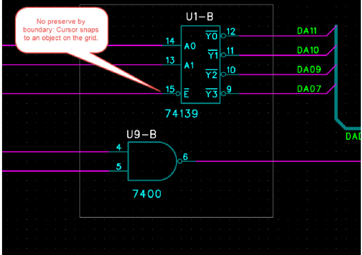 将文件中的组粘贴到您的设计中时,组中未连接的管脚、未端接的电线或总线可以自动连接。