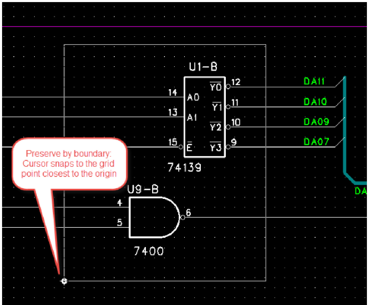 如果您启用了“按边界保存”功能,SailWind Logic 会锚定到设计格栅上最靠近组原点的点。