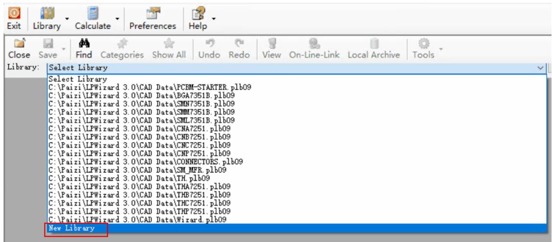 在库编辑器中,选择"Library:"下拉菜单并选择最后一个选项"New Library"。