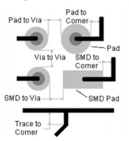 当使用组件规则时,它适用于规则边界和组件管脚之间的导线对象。如果导线通过组件下方但不连接到组件,则软件不会根据组件的间距规则对其进行检查。