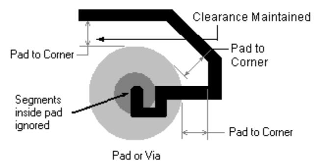 同网络第一拐角规则——硬/软性由设计特性对话框焊盘入口标签页中的"必要时忽略第一拐角规则以完成导线"复选框控制。