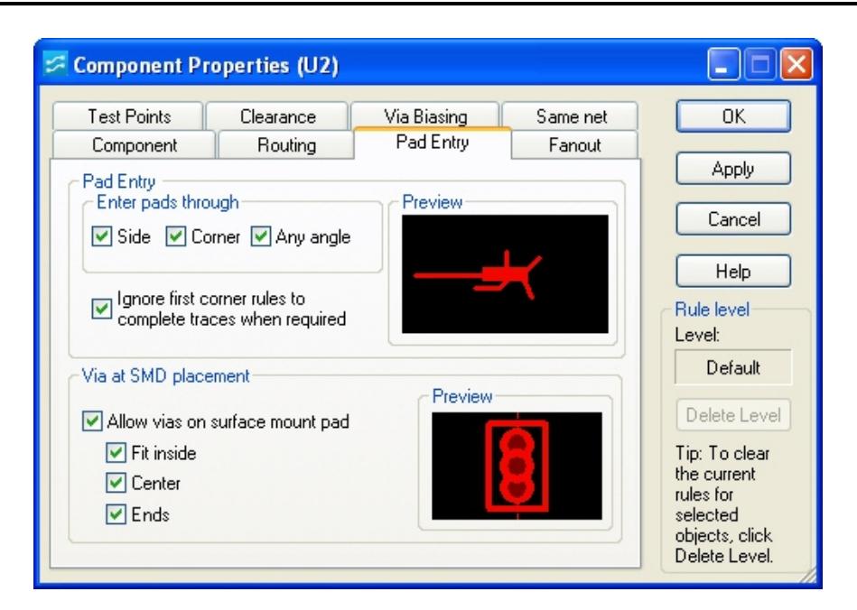 您无法在 SailWind Router 中更改过孔大小或添加额外过孔。使用 SailWind Layout 中的焊盘栈属性对话框执行此操作。