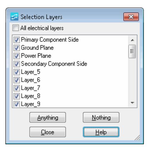 | 所有电气层 | 启用所有电气层上的对象选择。清除复选框以禁用所有电气层上的对象选择。注意:此复选框不影响非电气层,如丝印层。 |