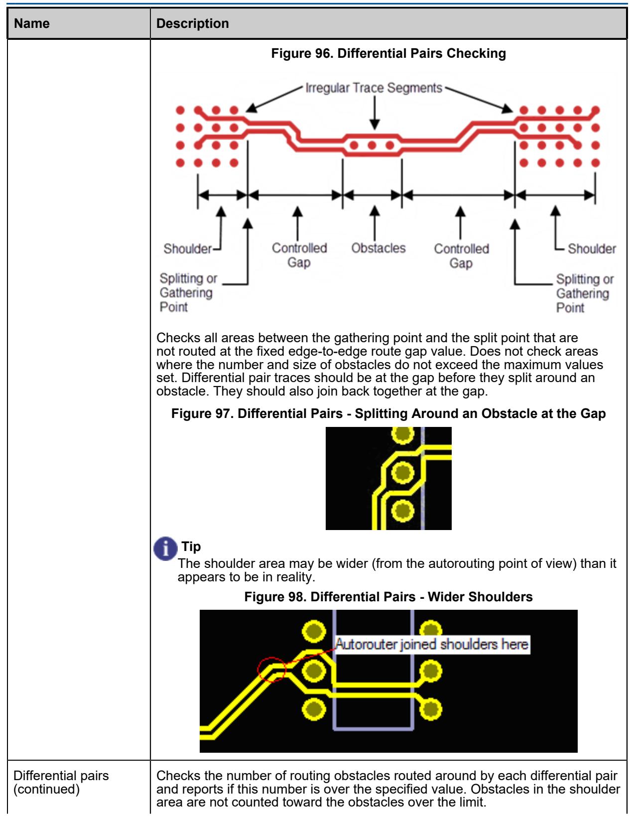 | 过孔表 | 列出每个可用过孔的属性,包括名称、过孔类型(例如通孔或部分过孔类型)以及过孔延伸通过的层。在"允许"列中选择复选框可启用该过孔用于布线。 |
