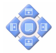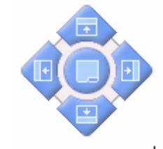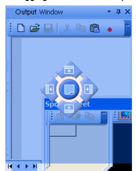 当您开始拖动窗口时,用户界面中会出现额外的图形。一组包含图形的箭头会出现在您正在拖动的窗口中心,如图115 所示。根据您正在拖动的窗口,该组箭头的中心可能还有一个标签图形。
